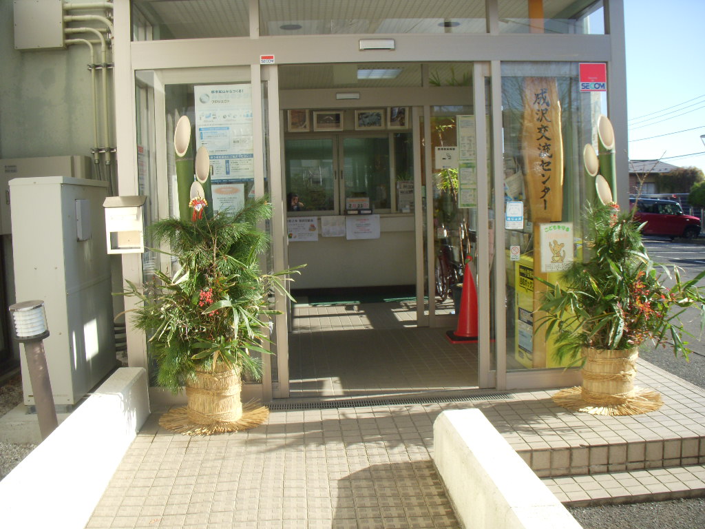 恒例の正月の賀詞交歓会には、年末に成沢楽寿会(老人クラブ)の有志の皆さんが豪華な門松をつくり成沢交流センター玄関に飾り、参会者の皆さんを出迎えます。